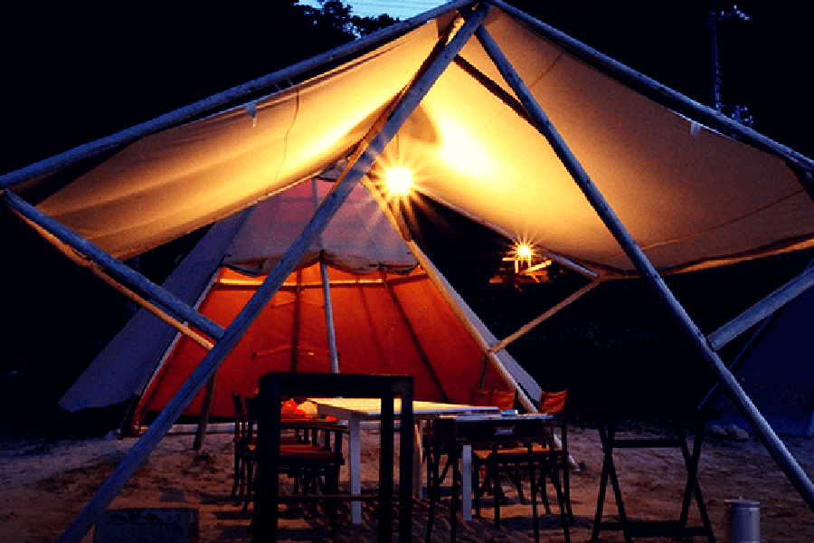 | 設備 | 常設テント/常設タープ/照明器具/コンセント/大型ローテーブル/ローチェア×6/BBQグリル(網、トング、炭バサミ付き)、簡易マット×6 |